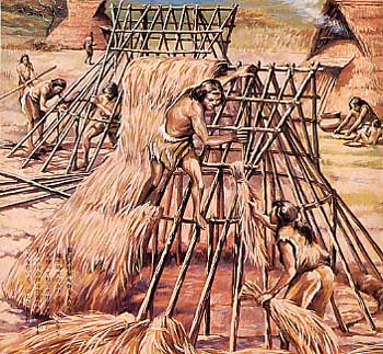 豊場と言えば、現在の名古屋国際空港ビルの辺りになり、牛山とは南西に向って目と鼻の先、牛山周辺に住んでいた縄文人たちは、小牧面の段丘崖に沿って建てられた住まい屋の庭先に立って間近に海を眺めることが出来たのではないでしょうか。 牛山には最も関わりの深い大山川沿いの浜井場遺跡では、煙道付炉穴は9基、集石土壙3基、焼土面4ヶ所が発見されており、縄文時代早期の人々が調理を行った跡とわかりました。 煙道付炉穴は、細長い半地下式の構造で、底から火を焚いて先端部は煙突状になっていたと思われるもので、科学分析によりイノシシやシカの脂肪酸が確認されたものもあり燻製施設と考えられています。 また、焼土と集石土壙(焼石が詰まった直径1mほどの穴)の組み合わせは、焚火の中で熱した石を肉や魚などと一緒に土の中に埋めて、蒸し焼きを行った跡とみられます。 未だ狩猟、漁撈、採集など原始的な生活を送っていた縄文の人たちにとって大山川沿いのこの地は、東部に広大な丘陵地帯(田楽面)を、南には大山川の河口を擁した海が広がり、生活の場として絶好の場所であったのかも知れません。 弥生時代に入り、大陸から水稲耕作が伝わってくると、牛山を含むこの地域は、大山川の水と大山川が運んでくれた肥沃な土地の恩恵を受け、眼前には豊な水田が広がり、豊な農村としてこの地域の発展を支えてきたことでしょう。 |