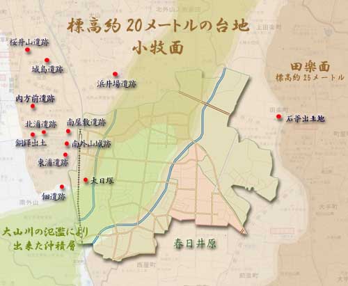 これらの縄文・弥生時代遺跡は、木曽川によって削られた土砂が堆積して形成された小牧面と呼ばれる標高約20メートルの洪