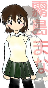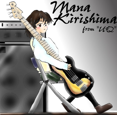 「霧島まな」 99/09/18 まなです 久しぶりに描いたからかわいくないなんて もんじゃないですね、うー、大失敗 ま、それはそれとして、ベース持ってます 設定の中に、バンド組むって話もあったんですね |