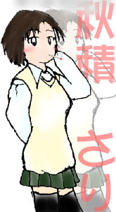 「水無月 巳弦」 99/03/24 更に、みなつき先生です みなつきさんの資料が、顔が半分しか写ってない プリクラしかなかったので、苦労しました あい、もはや誰だかもわかんないです 最近、行方がわからなかったそうですが 大丈夫なんでしょうか・・・ |