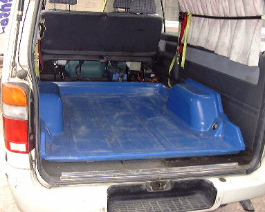 | 床面クッションフロア加工 ハイエースショートクラス\50000(税込み\52500) ハイエースロングクラス\55000(税込み\57750) スーパーロングクラス\58000(税込み\60900) バン、ワゴン車の使い勝手が抜群に向上。 端部はおり返しでクッション、合板、ポリカー ペットの3層接着構造で異音を押さえ、丈夫です。 その他の車種はお問い合わせください。 |